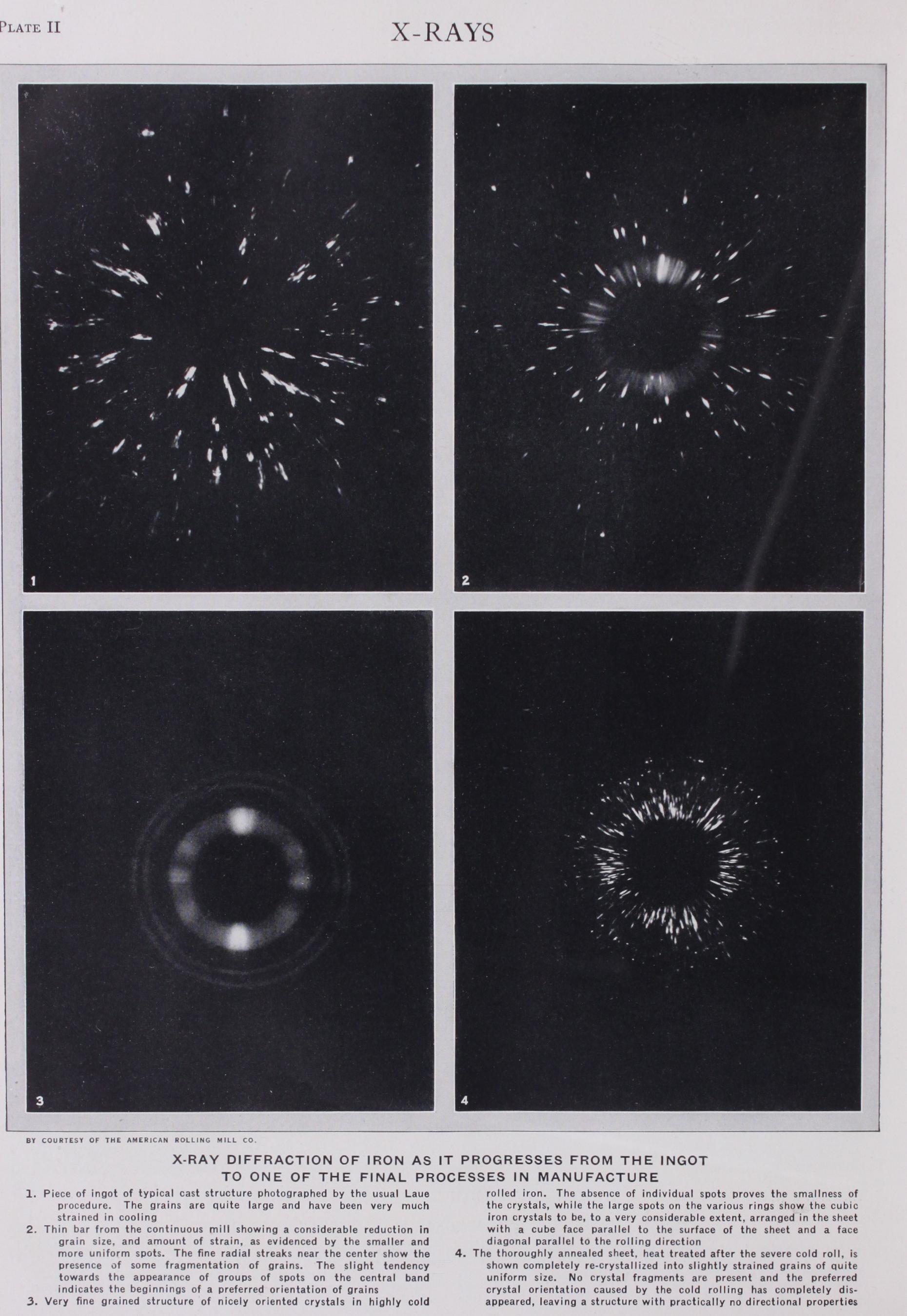 A striking example of the value of X-rays was experienced in the World War, when strange ammunition of unknown con tent was radiographed before being cut up for examination, there by avoiding all risk of accident.