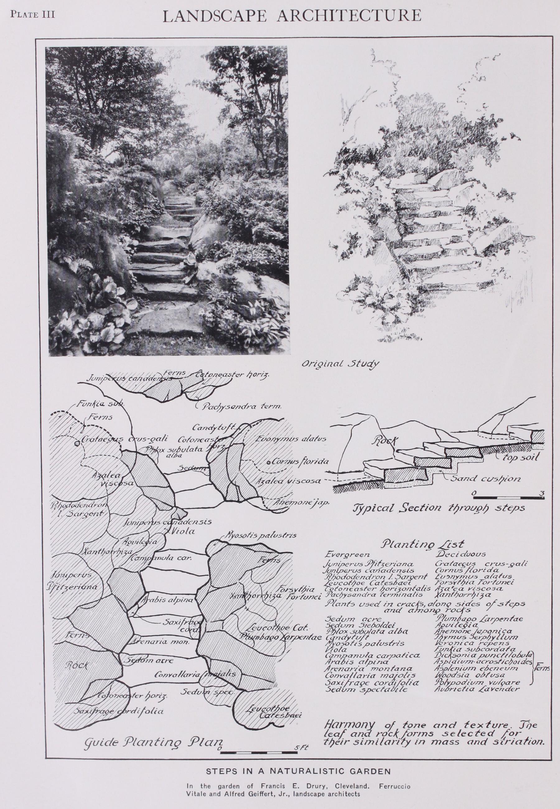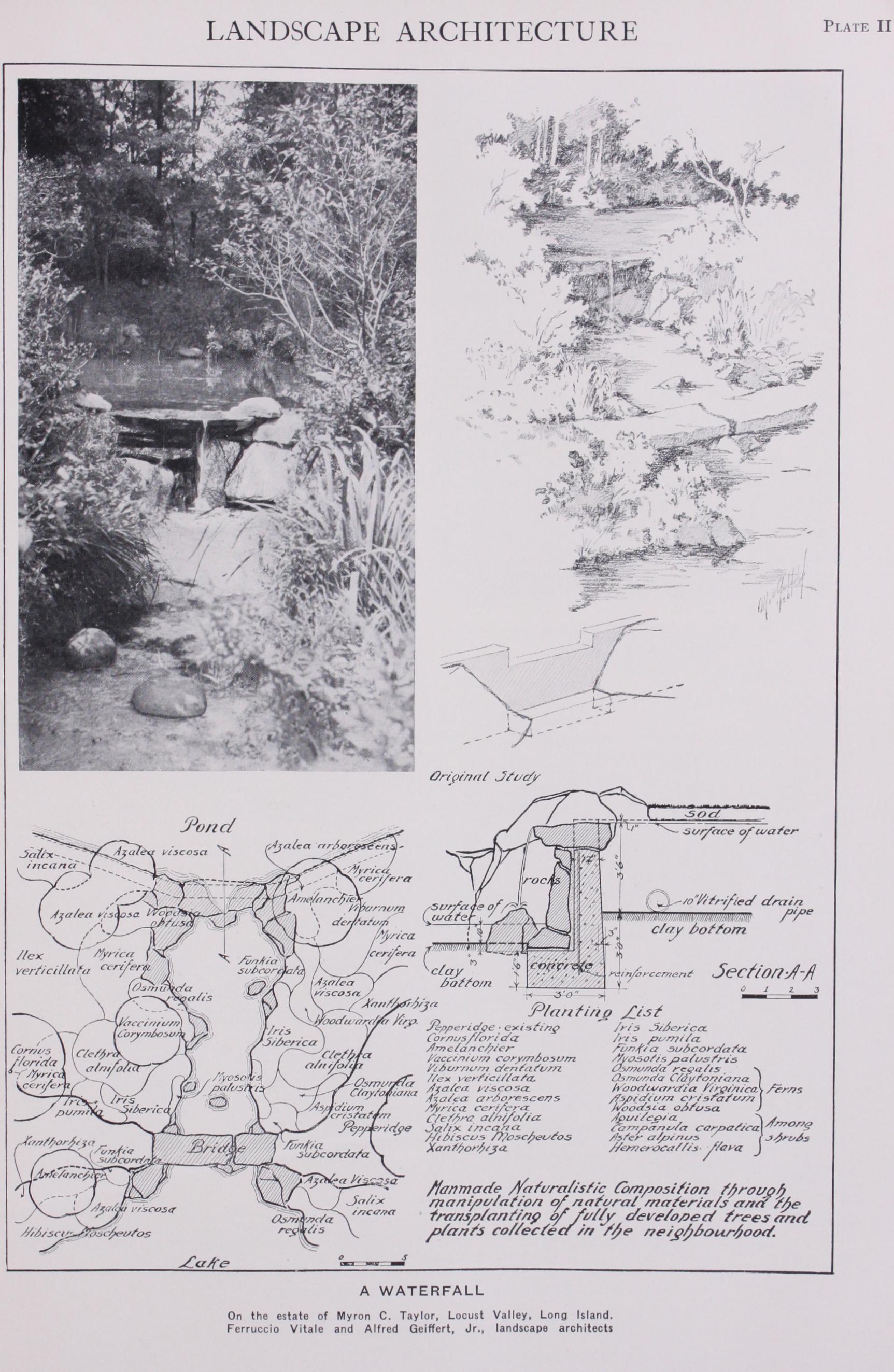 The relations of landscape architect to clients, contractors and collaborating practitioners are generally established in America, as well as the sequence of work on a given job, following from collection of topographic data and making of preliminary sketches, through representation of design in show plans and construction drawings, to superintendence on the ground of construction and maintenance.
