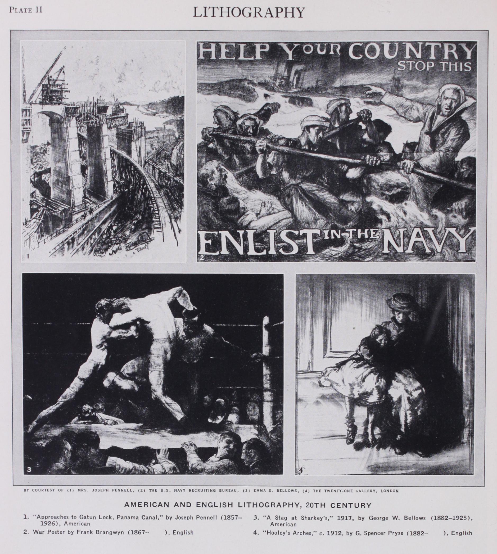 Certain magazines even in the '9os opened their pages to lithog raphers, whose work may be found in The Pageant, The Savoy, The Studio, The Magazine of Art, The Art Journal. But 19o7–o8 brought the boldest venture of all, The Neolith, a quarterly which lithographed text and illustrations alike. It ran for only four numbers. But almost immediately three men associated with it, A. S. Hartrick, F. Ernest Jackson, J. Kerr Lawson, to whose number Joseph Pennell, who had been living in England for years, was promptly added, established the Senefelder Press, which was soon abandoned, and organized the still prosperous Senefelder Club with Pennell as president. The first exhibition was given in the early winter of 1909 and since then annual exhibitions have been held in London and many others throughout Europe and America. Most of the distinguished lithographers of the day became members: J. McLure Hamilton, C. H. Shannon, John Copley its first secretary, E. J. Sullivan, Ethel Gabain, Spencer Pryse, Frank Brangwyn, the second president. The club already in the first quarter of the century did much to restore lithog raphy to its rightful place among the graphic arts, and upon it the future of the art, in a large measure, now rests.