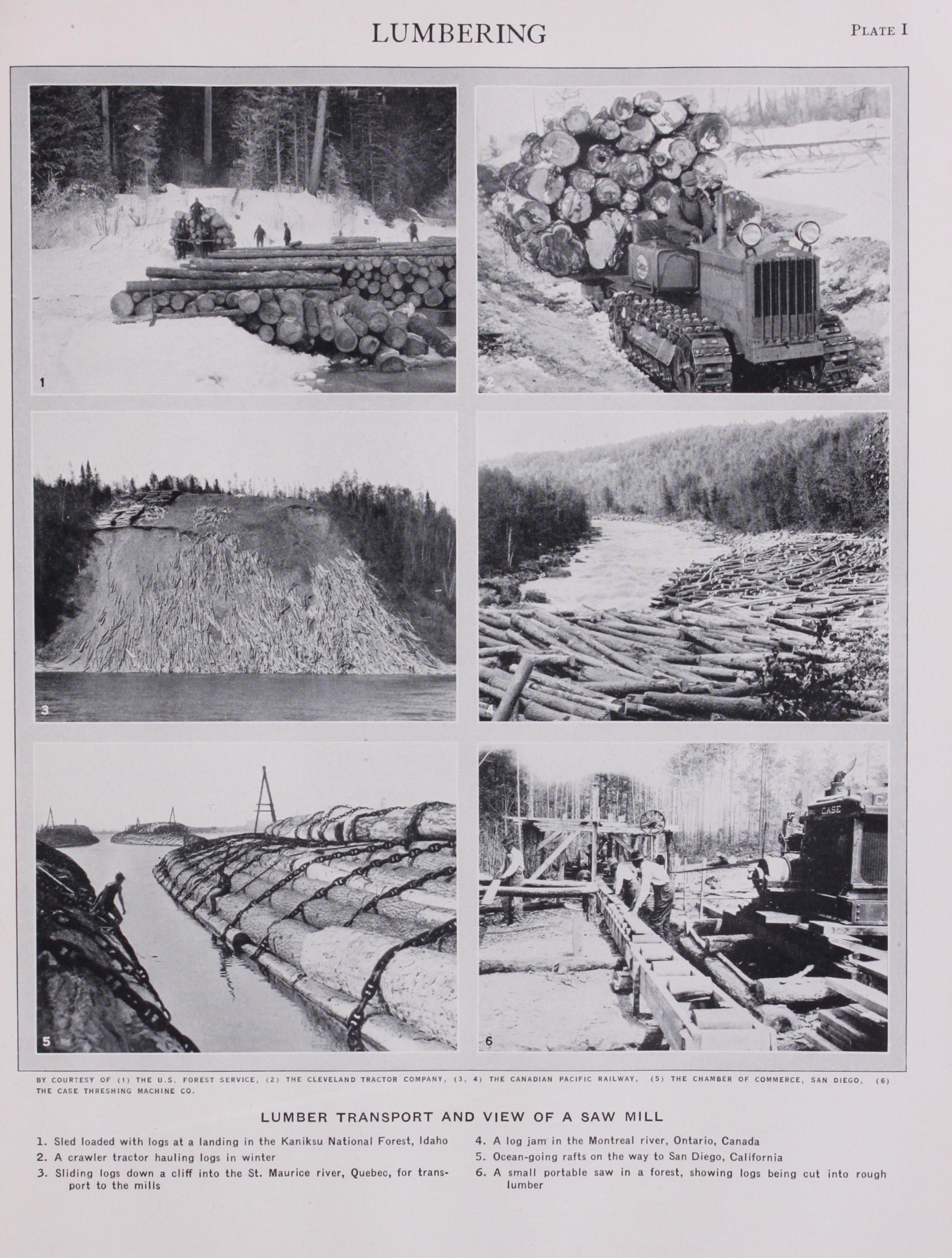In the early days of American history and also the history of the American lumber industry, the manufacture of lumber was a comparatively simple and inexpensive and likewise crude process. The trees were felled as needed, hand sawed and shaped into rough planks and timbers by manual labour for nearby immediate use. Later on, as the country developed, a greater demand for lumber resulted and more efficient lumbering methods were needed and were created. Furthermore, as population and industry expanded westward, the forests moved farther and farther away from the centres of consumption, and each new lumber district presented somewhat different problems in logging, manufacture and distri bution due to topography and species of wood f ound—all of which had a marked influence upon the development of modern lumber ing methods.
