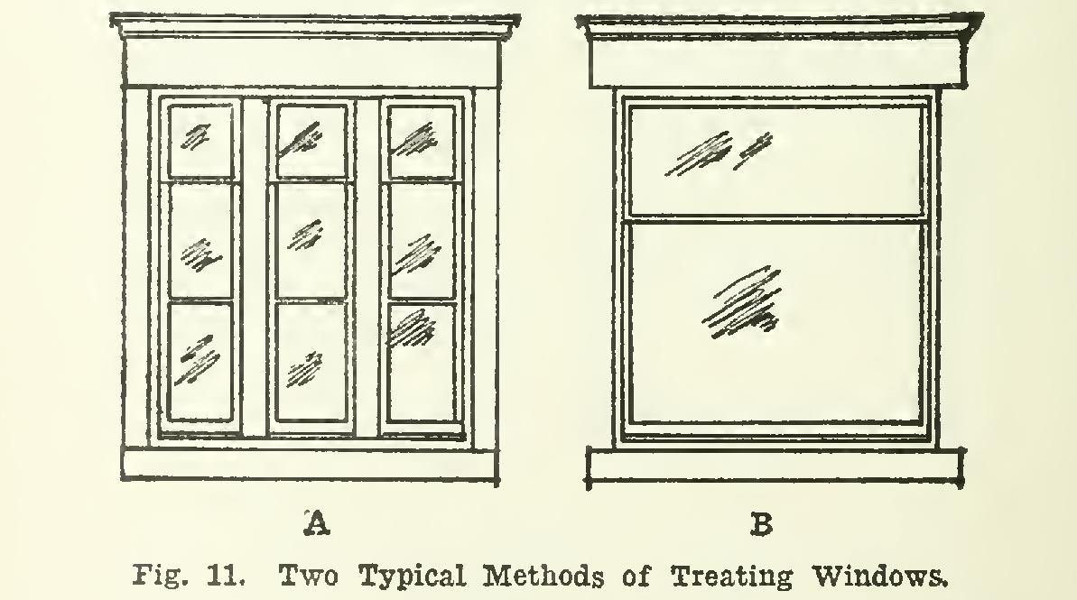 Fig. 10. Illustrating Method of Treating Elevations. In A, vertical lines are emphasized, adding to the appearance of height; in B, emphasis is laid on the horizontal lines, adding to breadth and length of structure.
