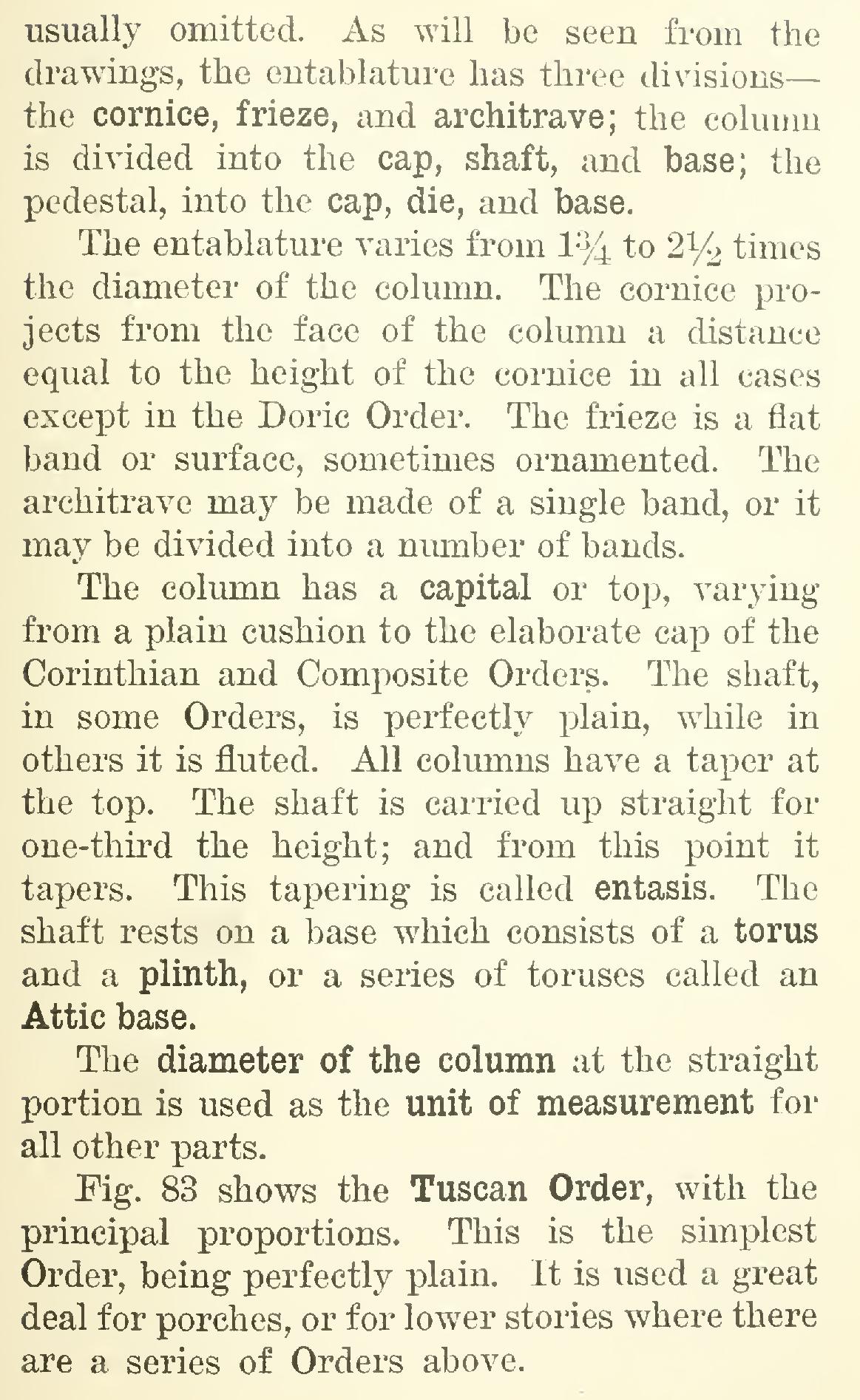 We have four Orders which are used in archi Tuscan, Doric, Ionic, and Cor inthian. (See Figs. 83 to 86.) A fifth Order— the Composite fea tures of the others.