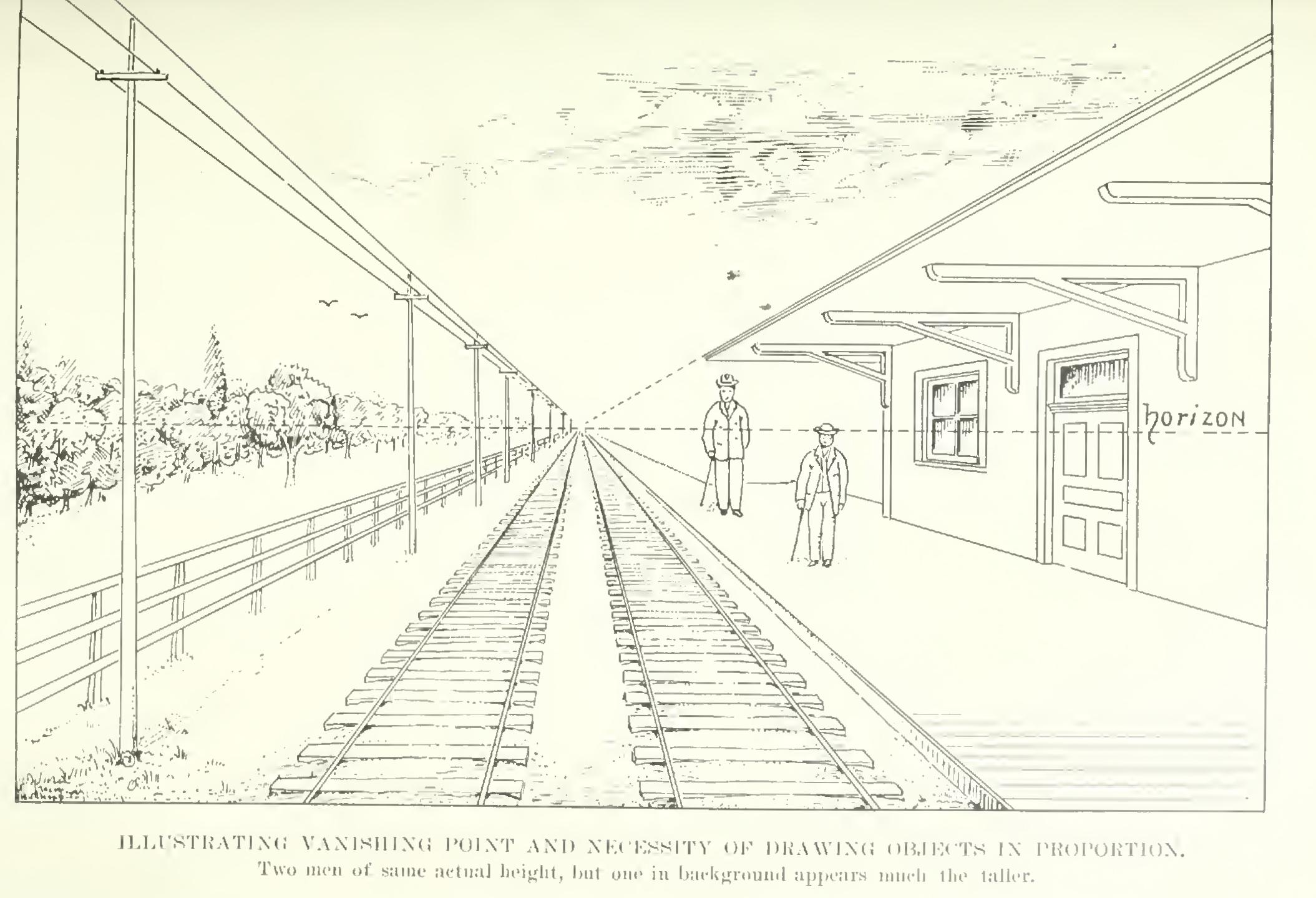 In Figs. 7S and 79, all the other lines and edges which are actually parallel in space are drawn as parallel lines; but in the perspective of Fig. 77, the other lines which are really parallel in space are drawn as converging lines—as, for example,_the edges of the roof and the ridge, the top of the doorway, etc.