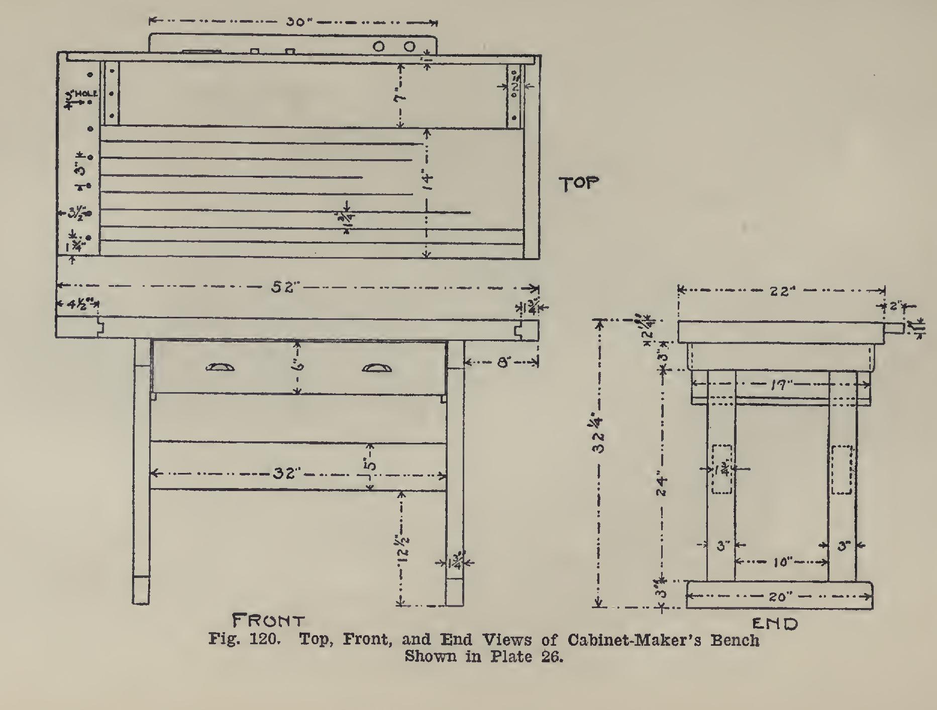 A BENCH The bench shown in Plate 26 and Fig. 120 is one the writer has used in his work for a number of years, and one which has proven quite satis factory.