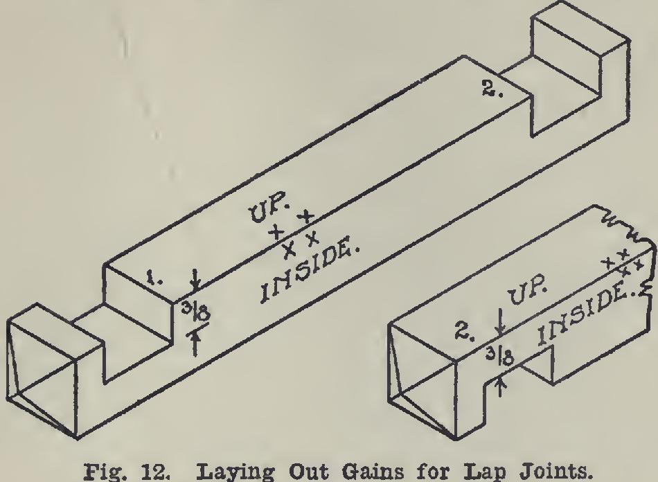 The next step is the laying-out and cutting of the gains which form the lap joints. Careful ness in this will insure success if the directions are followed. There is a reason for every direc tion, and every direction is based on the experi ence of many men for many years.