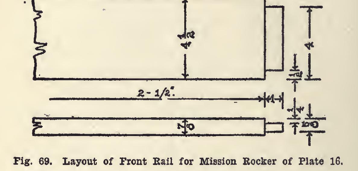 After the tenons have been cut, the rockers may again be placed, and the location of the mortises marked by superposition. Fig. 66 gives the gauge settings for the tenons.