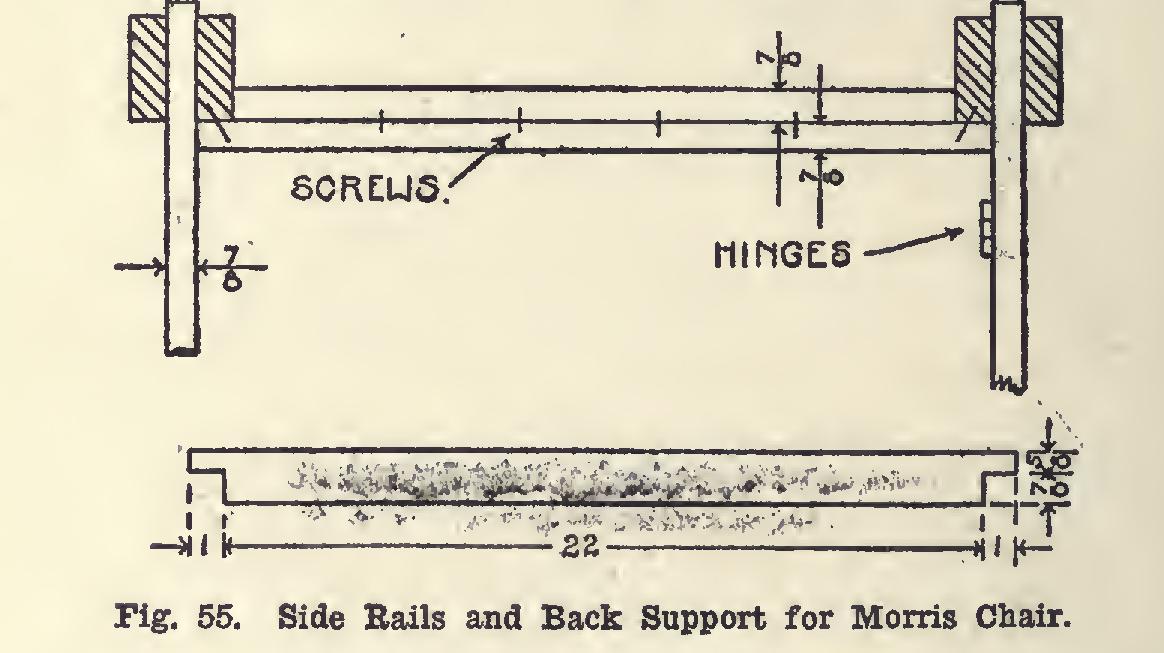 Fasten the back to the main frame of the chair, as shown in Fig. 53, by means of common iron strap-hinges.