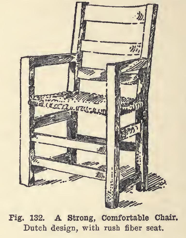 A chair, also of Dutch design and having a flag seating, is shown in Fig. 132. To one accus tomed to French creations of such light con struction that one hesitates to sit upon them for fear of being precipitated to the floor, these designs ought to appeal.