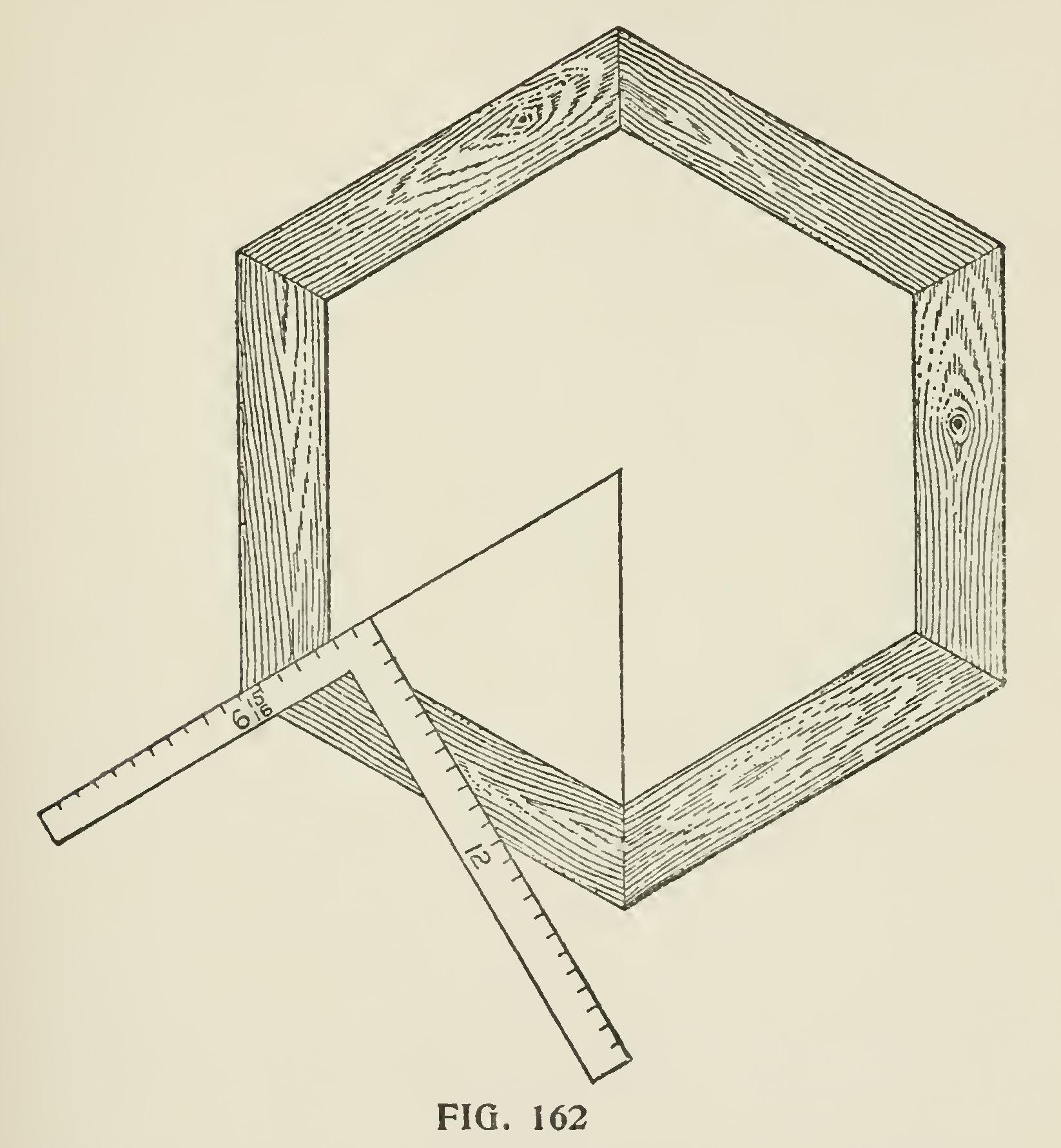 Octagonal Roofs.—Fig. 158 represents an octag onal roof. I n its construction the following suggestion on laying out an octagon must be referred to.