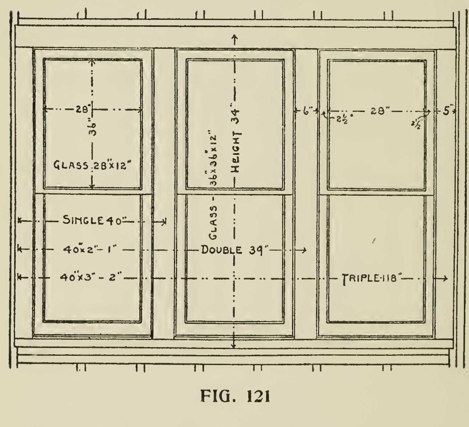 Figs. 121 and 122 show it perhaps plainer than words, and also show an opening ready for a two-light 36 by 36-inch window.