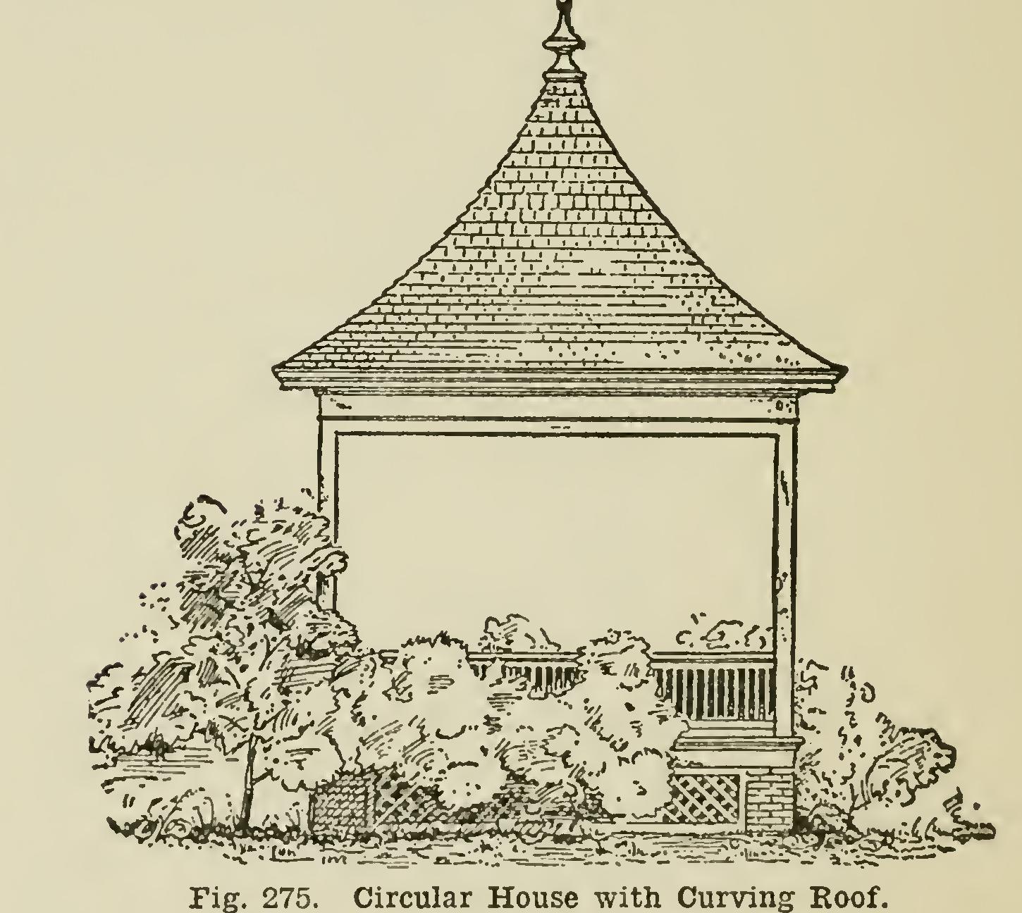 Where a curve of this kind is used on two sides of a building with gable ends, the increased cost is very slight, because the curve is not suffi cient to interfere with laying the shingles easily, and the roof boards go ola just the same as on a straight roof. Where the pitch is sufficient, and you do not care for the graduated effect, the shingles are laid in the usual way.