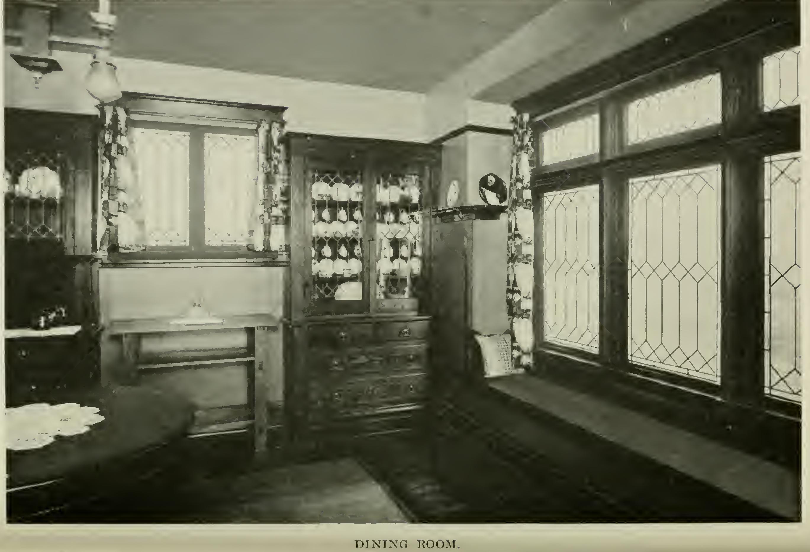 The sill is rebated for the lower rail of sash and is ploughed for stool and shingles. All spaces about the frames are calked with oakum and pointed with "scratch" mortar.