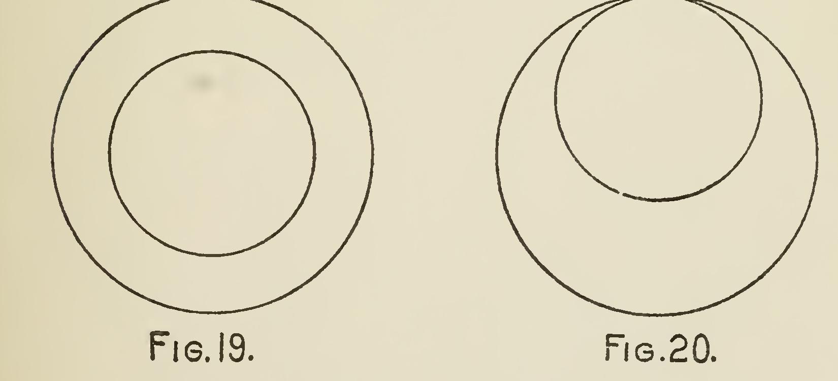 If a straight line be drawn from the center of a circle to meet the chord of an arc perpendicularly, as D C, in Fig. 18, it will divide the chord into two equal parts, and if the straight line be pro duced to meet the arc, it will also divide it into two equal parts, as A C, C B.