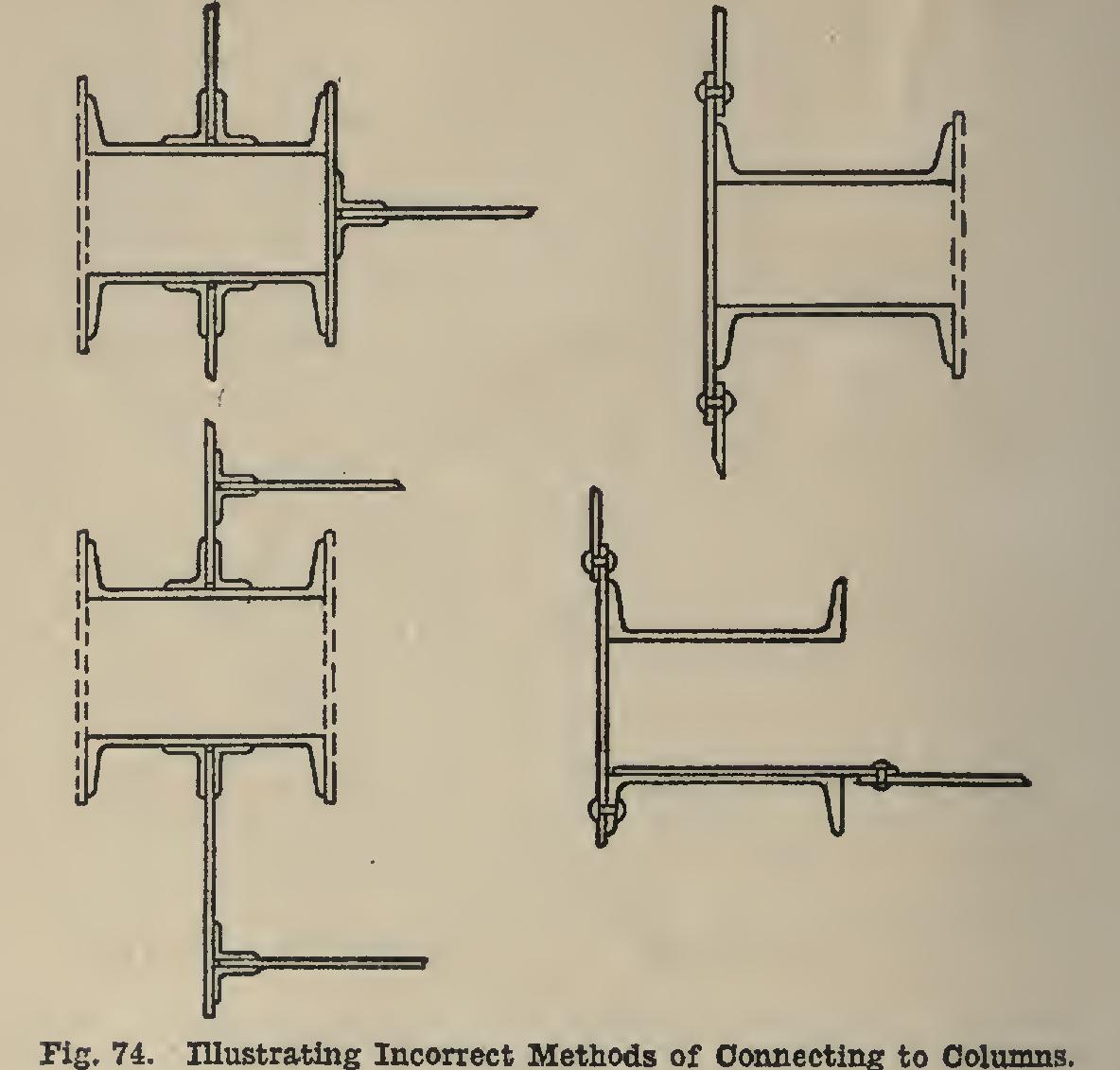 Another form of simple tension member is the flat plate, which is connected to other mem bers at its ends by being riveted. It is coming more and more into favor; but, if used, the con nection should be made as shown in Fig. 78, a, and not as in Fig. 78, b.