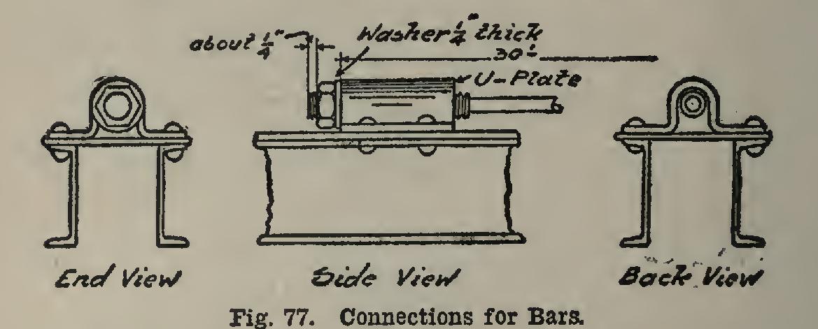 The connection of such bars to other mem bers may be made by means of devises (C 210), or by some form of U-plate as shown in Fig. 77. Sometimes a bolt-head is forged on one end of the bar, and a nut is used on the other end.