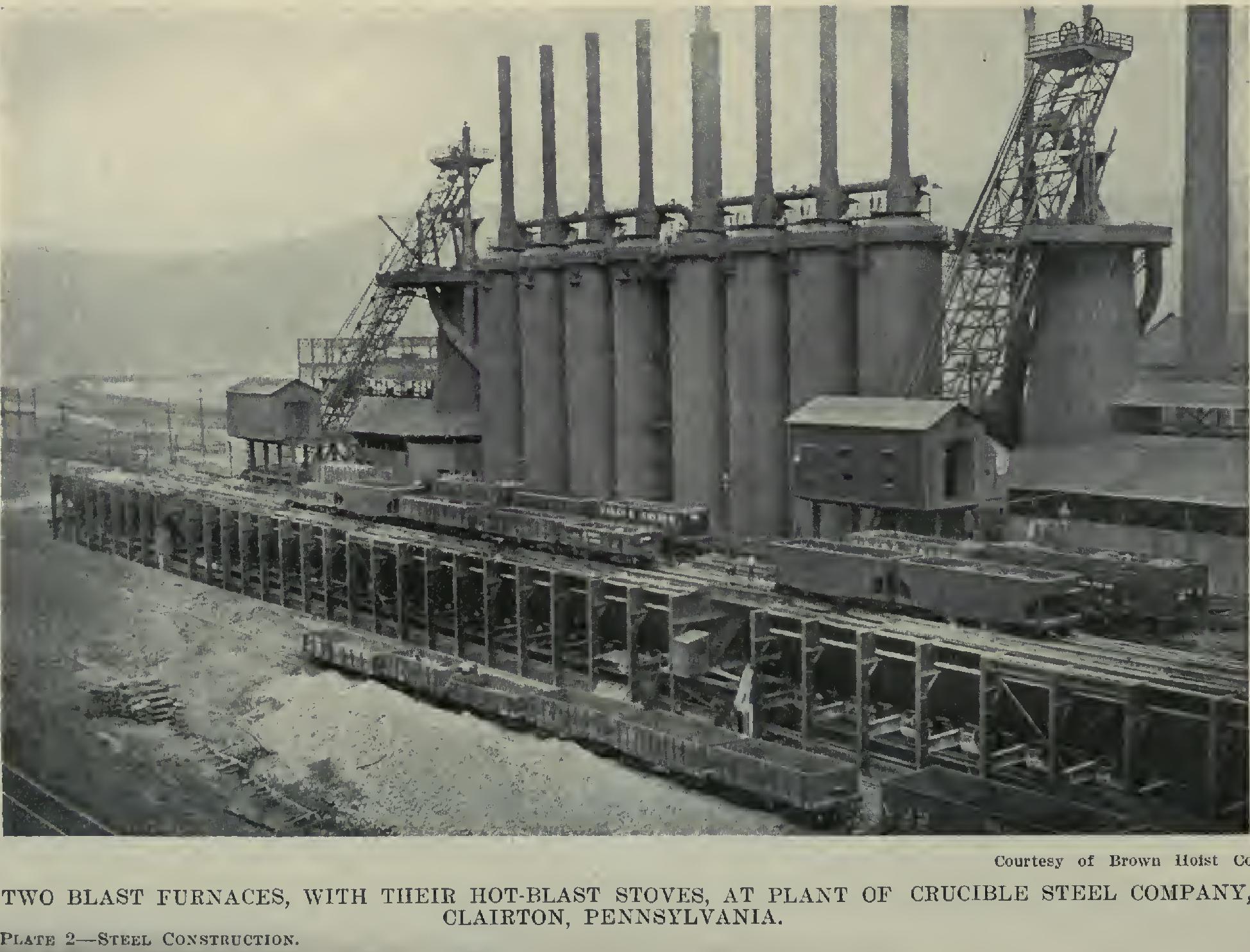 For example, a lintel of Troy, N. H., granite 5 feet long, 6 inches deep, and 8 inches wide, hav ing its ends fixed in the walls, carries a uniform load. From Table II, the strength is found to be 2,335 pounds per square inch. In Table V, the factor is which is always to be multiplied by the width and by the square of the depth, in inches, and divided by the length in feet. So the ultimate uniform load is For safety this is to be divided by 4, so that the safe load is • W=22,416+4=5,604 pounds.