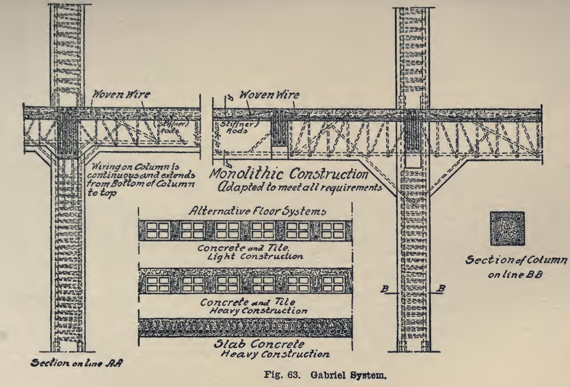 The Gabriel System of reinforcing beams, floors, and columns, is shown in Fig. 63.
