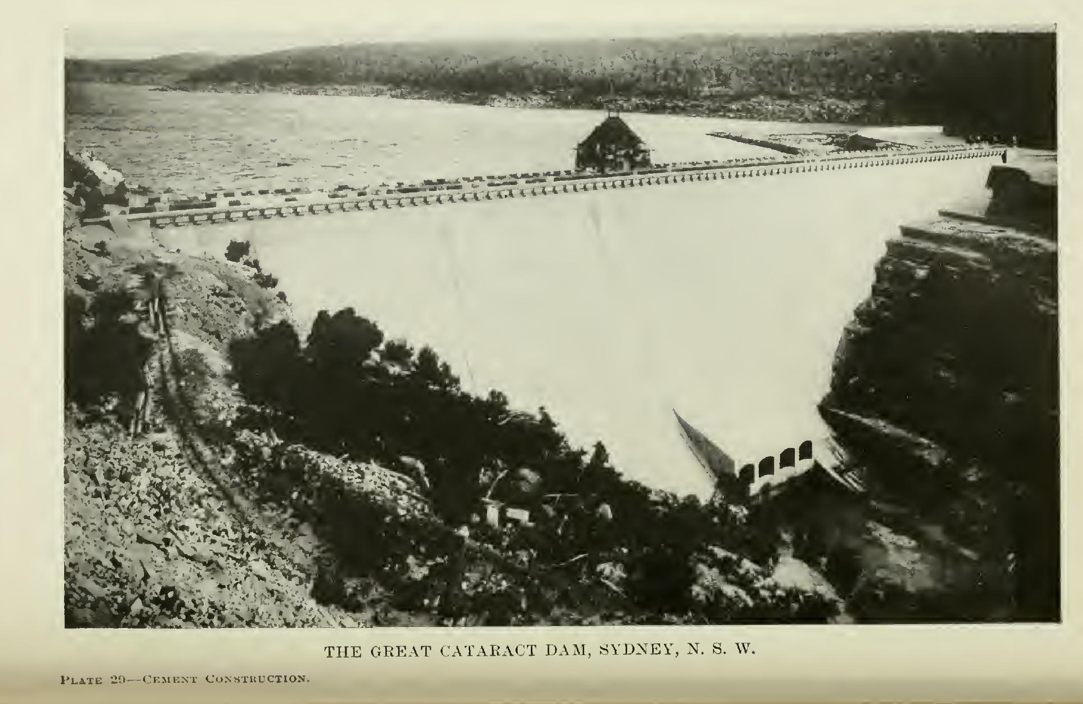 A hoist and tower was erected over the mixer ; and an incline, equipped with industrial railway and car operated by cable, was constructed from the storage piles of sand and stone to mixer. The concrete was raised to the desired height in the tower, and discharged into a chute fitted with a gate. The concrete was drawn from the chute into industrial cars of about 18 cubic feet capacity each, pushed by hand on tracks to the point of pouring.