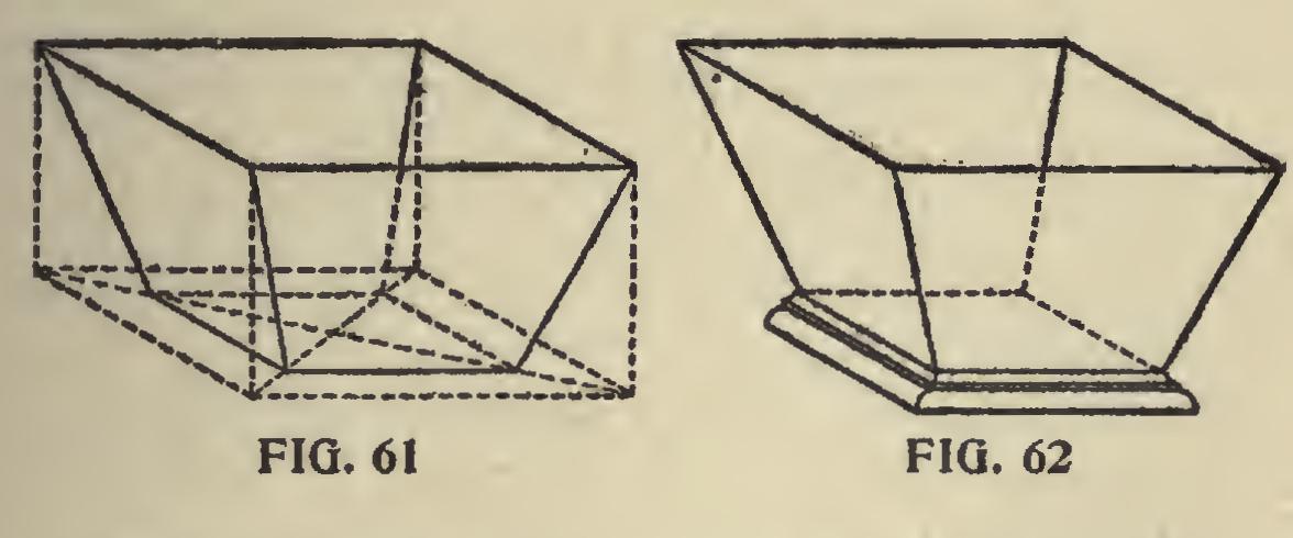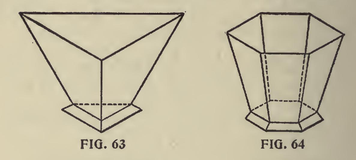 Fig. 62 represents a rectangular hopper with projecting bottom piece, and Figs. 63 and 64 represent the same for the triangular and hexag onal hoppers.