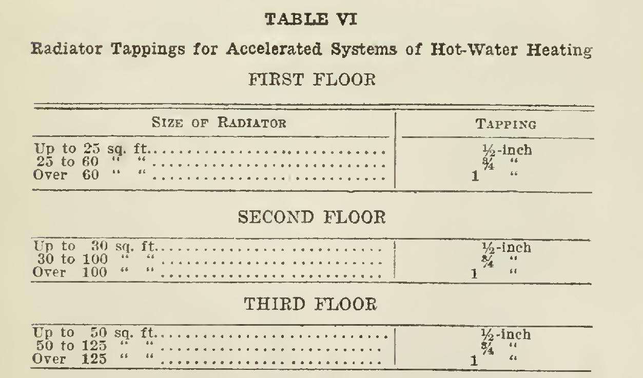 For accelerated systems the radiator tap pings are much smaller than with the usual in stallations. Table VI, showing the difference, will serve as a guide.