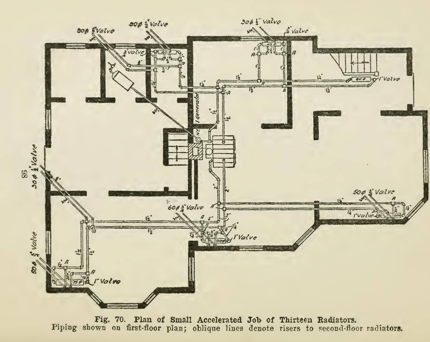 The increased pressure generated more than doubles the velocity of the circulation. Its usage permits of smaller-sized supply and return pipes and of reduced radiator tappings, consequently allowing of the use of smaller valves and fittings, and substantially reducing the cost of materials as well as the labor of installation.