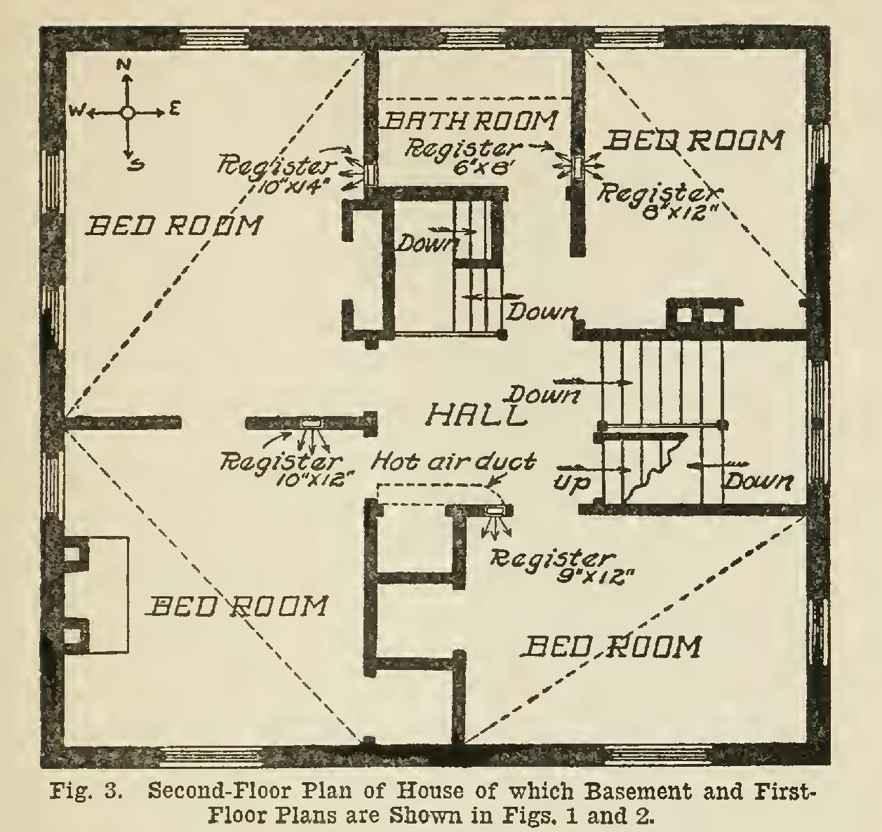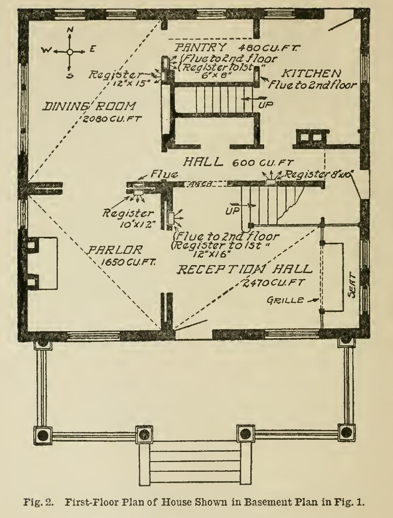 To illustrate the proper method of installing a hot-air furnace, we shall consider its applica tion to a house of average size. Fig. 1 shows