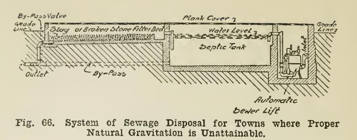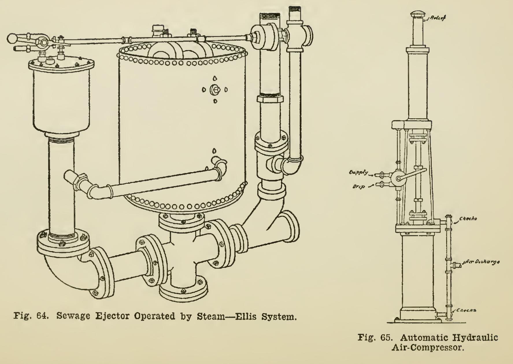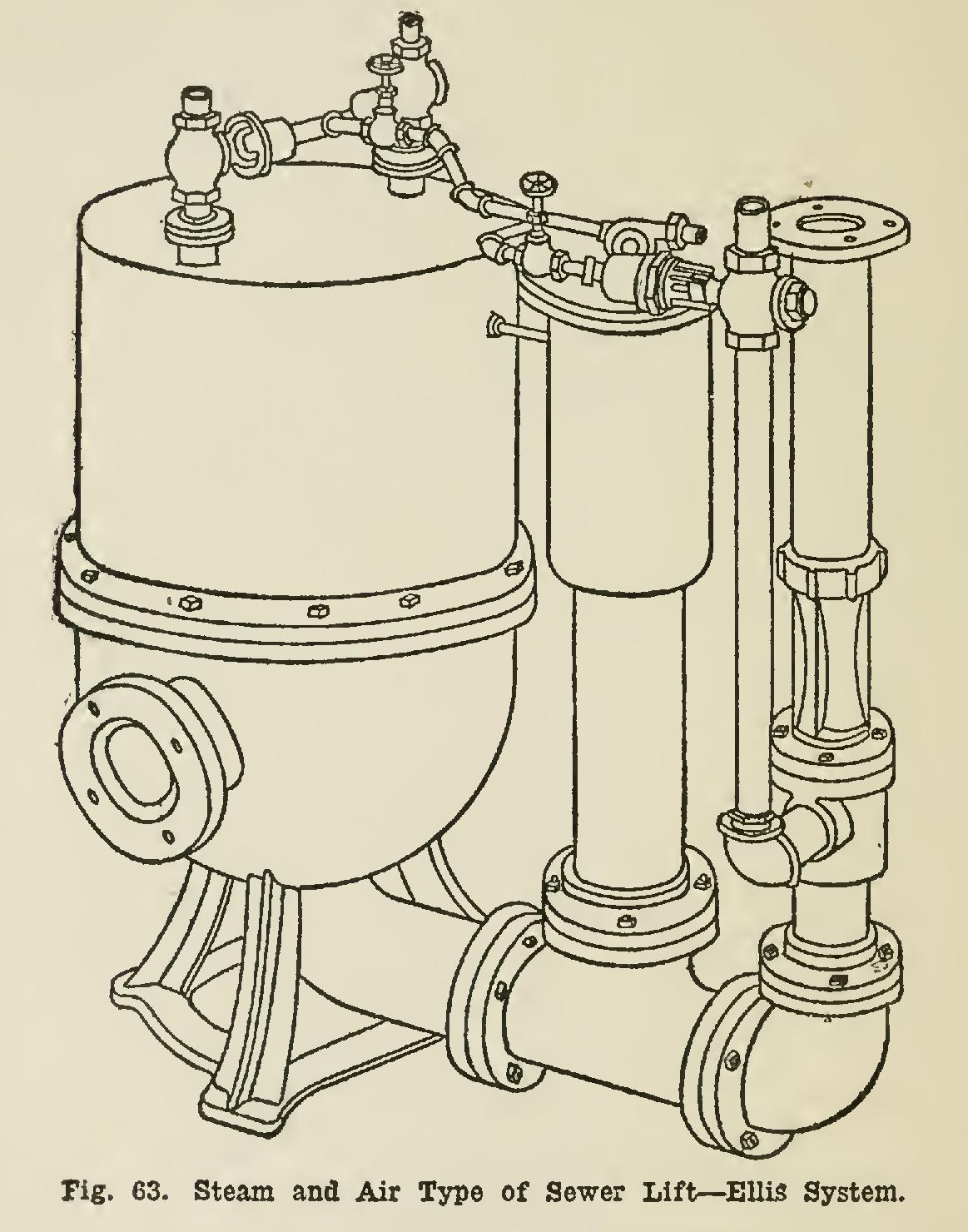 It often happens that the main sewer in the street is higher than where the main sewer from the building is required to leave the build ing. This requires the use of some mechanical means to deliver the sewage from the building into the main or street sewer.